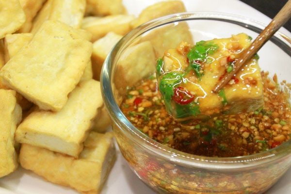 Who is looking for fried food to eat and enjoy, You can look recipe Fried tofu. Take the white tofu and fry it until the color is crispy and soft. Served with roasted peanut dipping sauce. Ingredients 65 g of granulated sugar Palm sugar 65